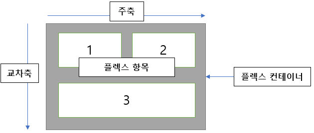 - 플렉스 항목(자식 박스) : 플렉스 박스 레이아웃을 적용할 대상